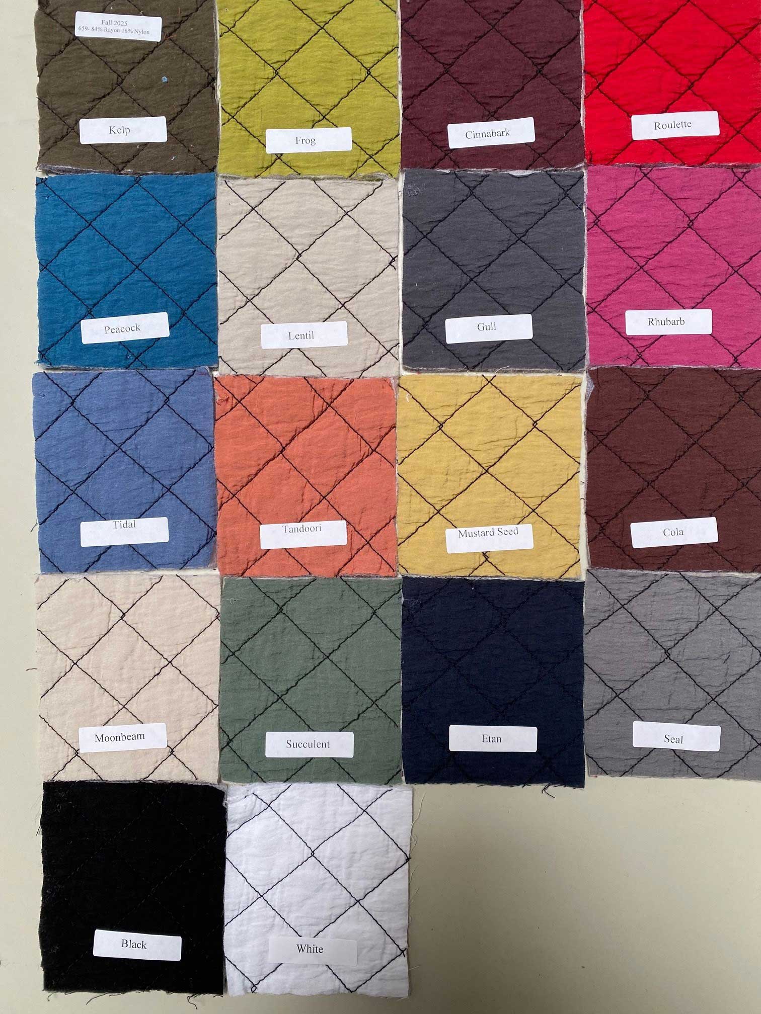 Colors: "Tandoori"--muted salmon (NOT shown--photo is "Mustard seed"); Deep red-rust color called "Cognac" (2024-25)