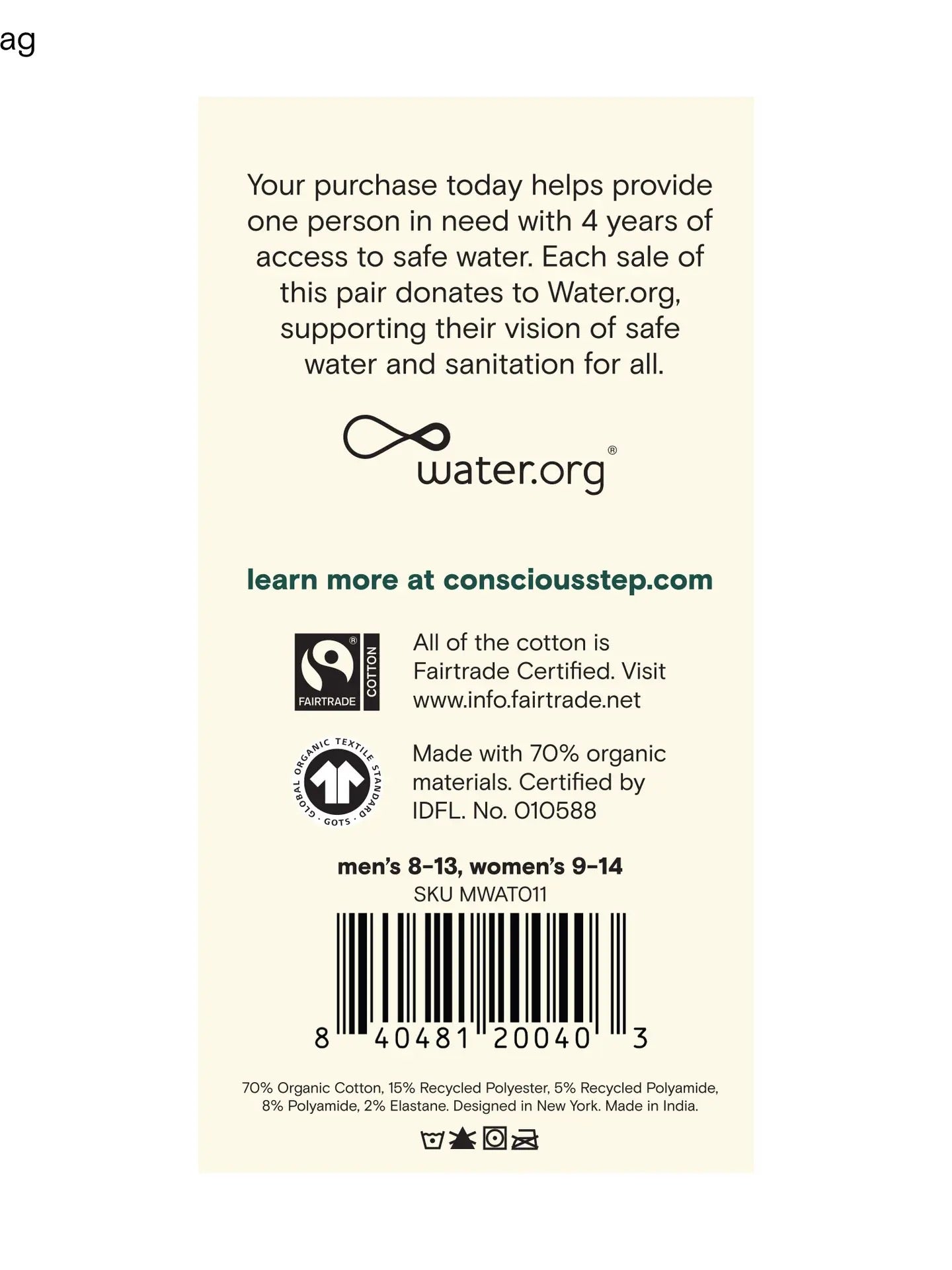I call them "Socks with Souls". These socks come from a Brooklyn-based company called "Conscious Steps": each sock has a different mission to help the world and they do that a pair of socks at a time. Each purchase includes a donation to a cause that makes a difference to make the world better in some way. Walk your talk and take a "step" to improve what mattes to you with these mission-driven footwear. Sustainable; Certified Organic; Certified FairTrade; Certified Vegan; Member 1% for the Planet.