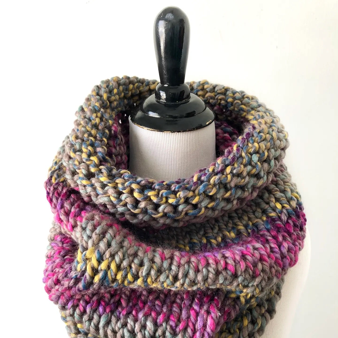 Simplistic, functional, and yet absolutely beautiful, this hand knit neck warmer is the perfect layering piece when you need a little something extra on those chilly days. Since the neck warmer is knit as one long circular piece, it's easy to just slip over your head to cover you in scrumptious softness and color. Tapered more on the top and wider on the bottom, it drapes beautifully all on its own with no extra work required from you.
