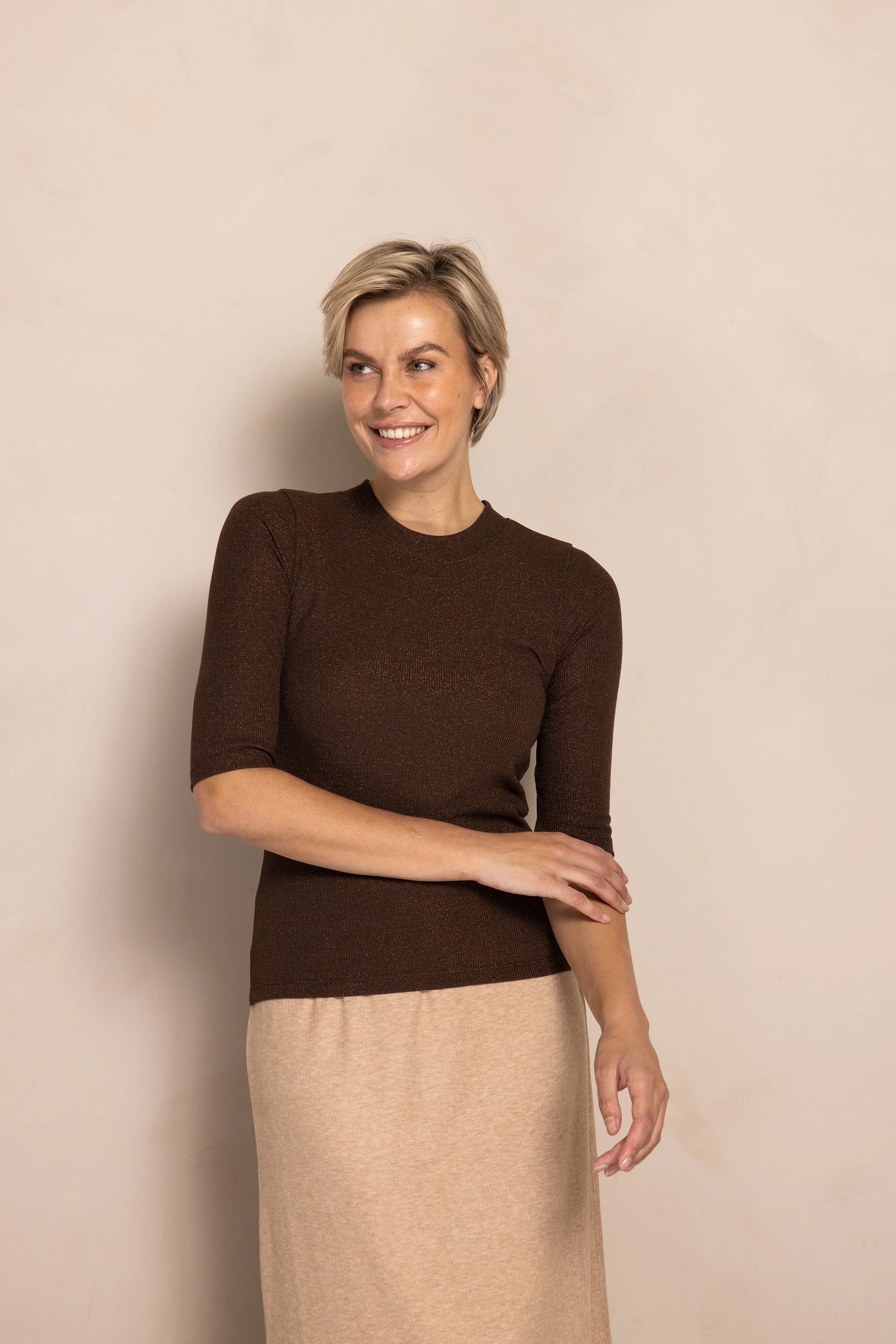 Top--"Zhanyon", Short Sleeved, Brown (Zhrill)
